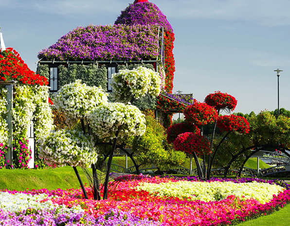 花樹既能獨立成景,又可在綠雕中應用,方式多樣。
