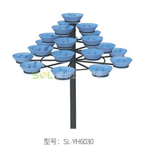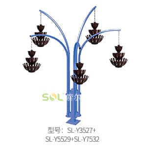 吊盆式組合花樹,造型由立體組合吊盆SL-Y3526、SL-Y5529、SL-Y7532,配以鋼骨架組合而成。 3種吊盆可自由搭配,組成10多種不同的造型,根據實際情況選擇合適的造型。 規格:SL-Y3526直徑350mm,高度255mm;SL-Y5529直徑550mm,高度285mm;SL-Y7532直徑750mm,高度315mm。