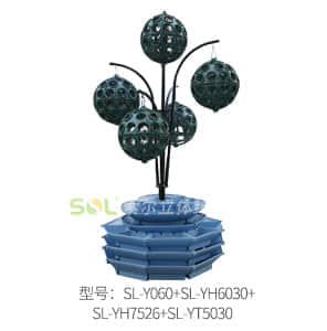 景觀花樹,由5個直徑600mm的園藝球SL-Y060,配以鋼結構組成。高度2500mm。 整體造型由鋼骨架、單孔花架、卡盆、卡扣、灌溉系統、無紡布袋配以各種花草而成。