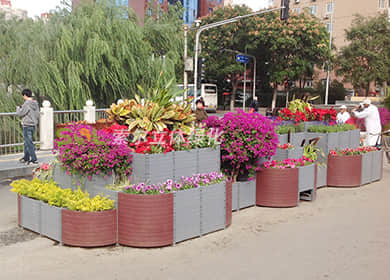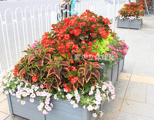 組合造景,拼接而成的花箱,可放于道路人行道、步行街、廣場等空地。
