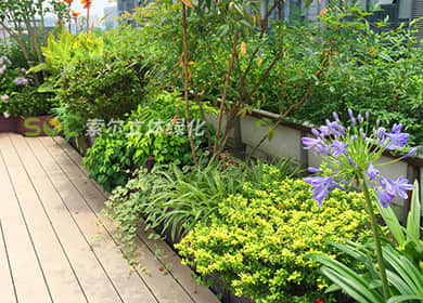 屋頂花園的植物,以開花植物及藤本、灌木植物為主,甚至可使用小喬木,形成有層次的有色彩帶的立體效果。